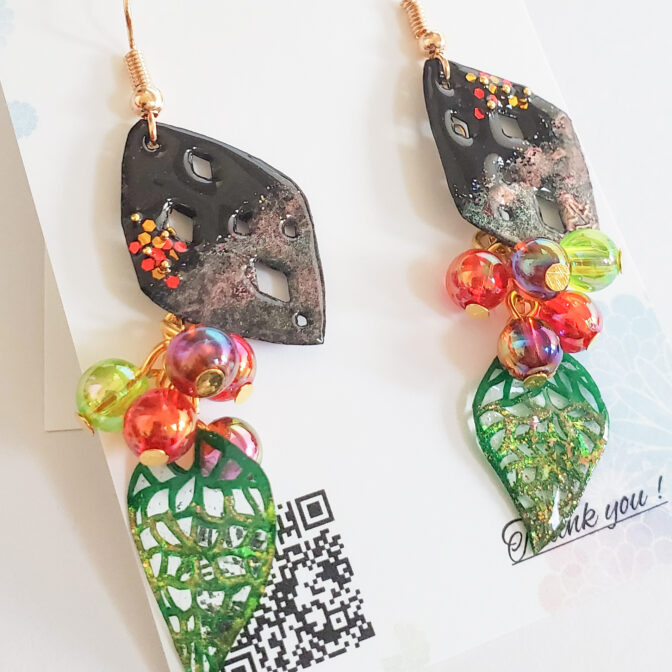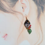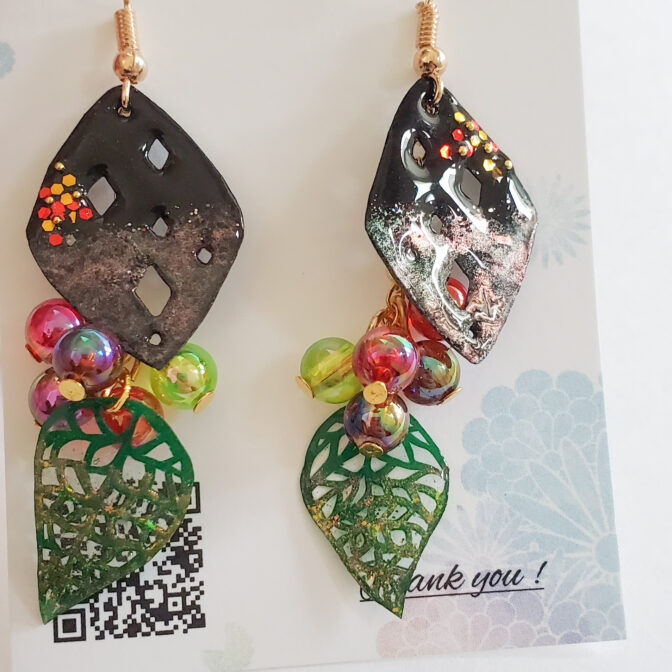 葉と木の実の切り絵ピアス/イヤリング[ひし形]