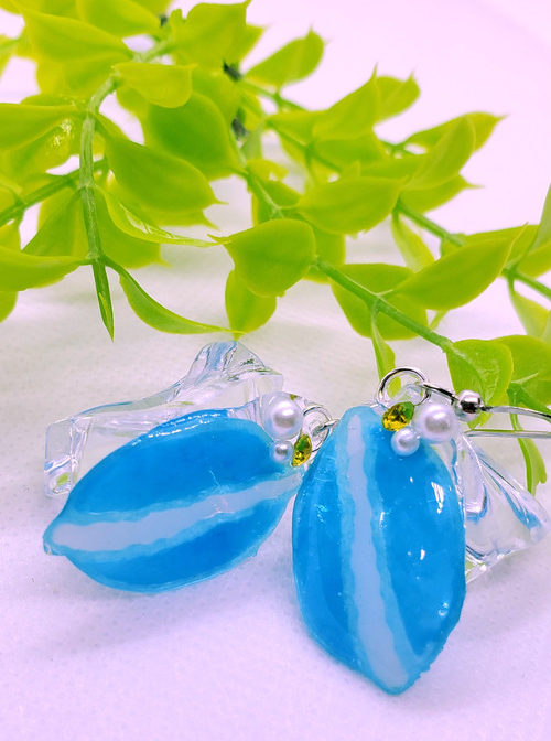 シルバーの金具は青いマカロンと相性ばっちりで清潔感をたっぷり感じさせてくれます。とにかく青とシルバーの爽やかさがお洒落で可愛いです。